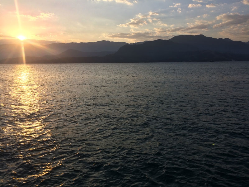 - El agua acaricia la orilla mientras el sol cae en Ilhabela