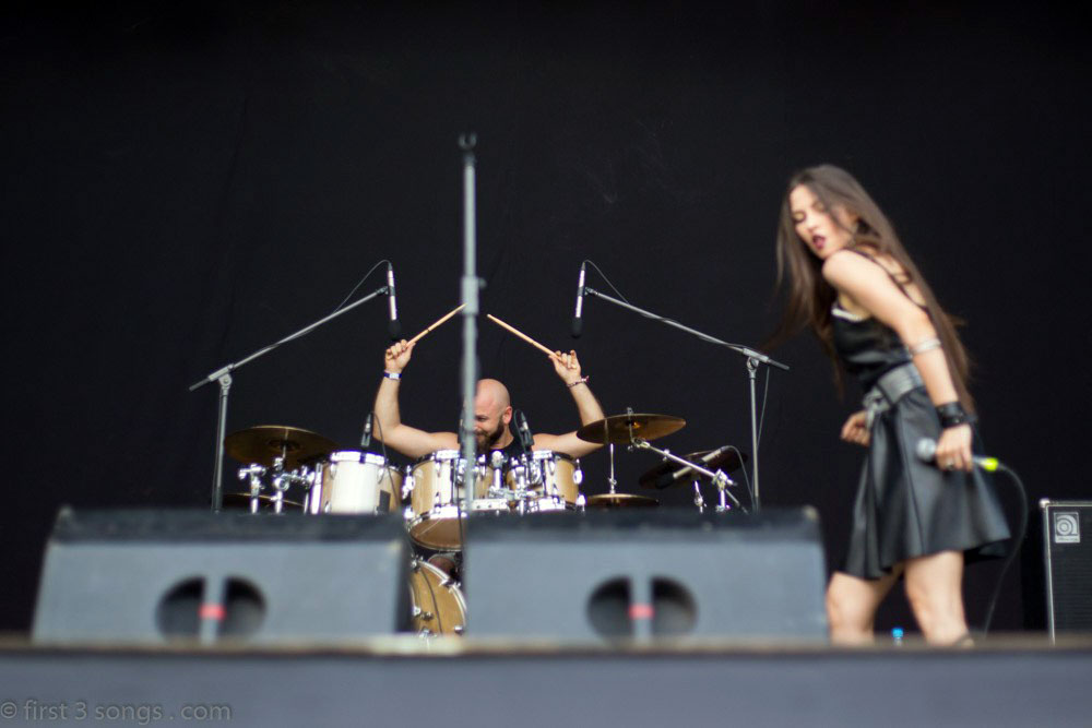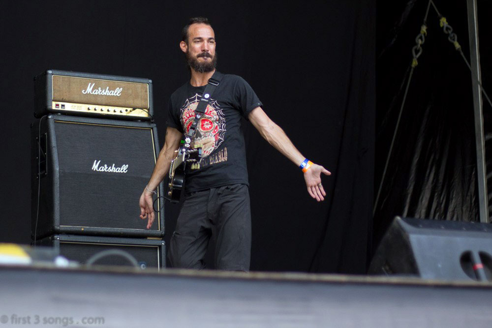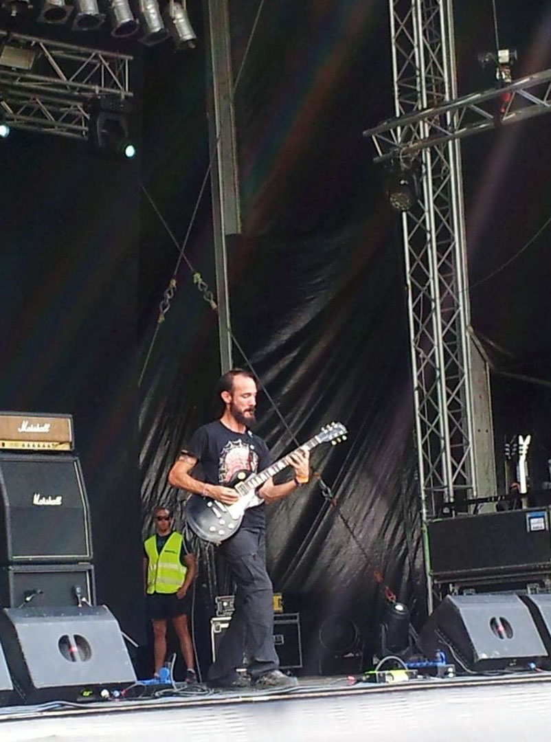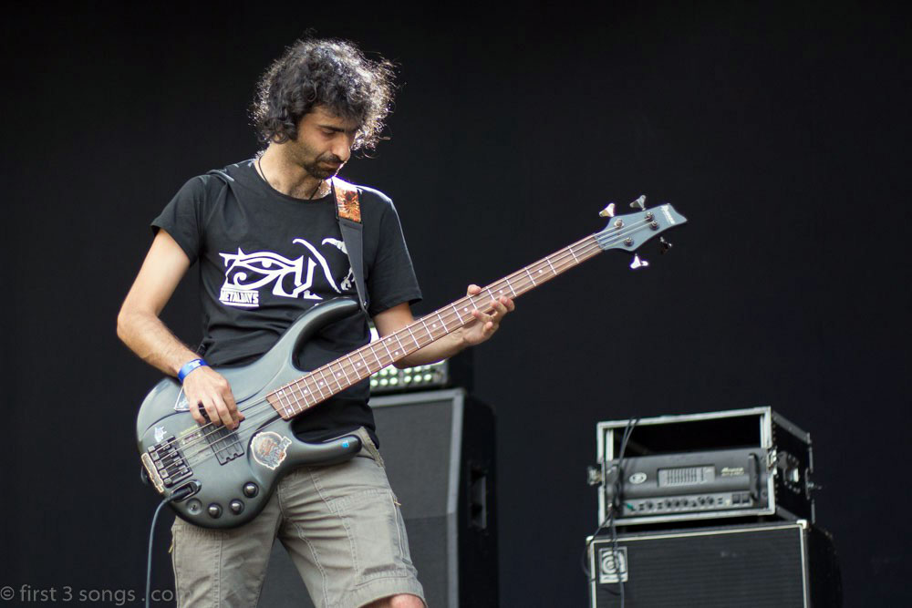 El show estuvo muy bien. Arrancamos con Heavens Eyes -con un problemita en mi guitarra que fue rápidamente sorteado y para la segunda vuelta de la intro ya estaba andando-. Seguimos con Crucible, el primer single del disco. A medida que íbamos tocando mas y mas gente se acercaba a ver y a headbanguear con nosotros.