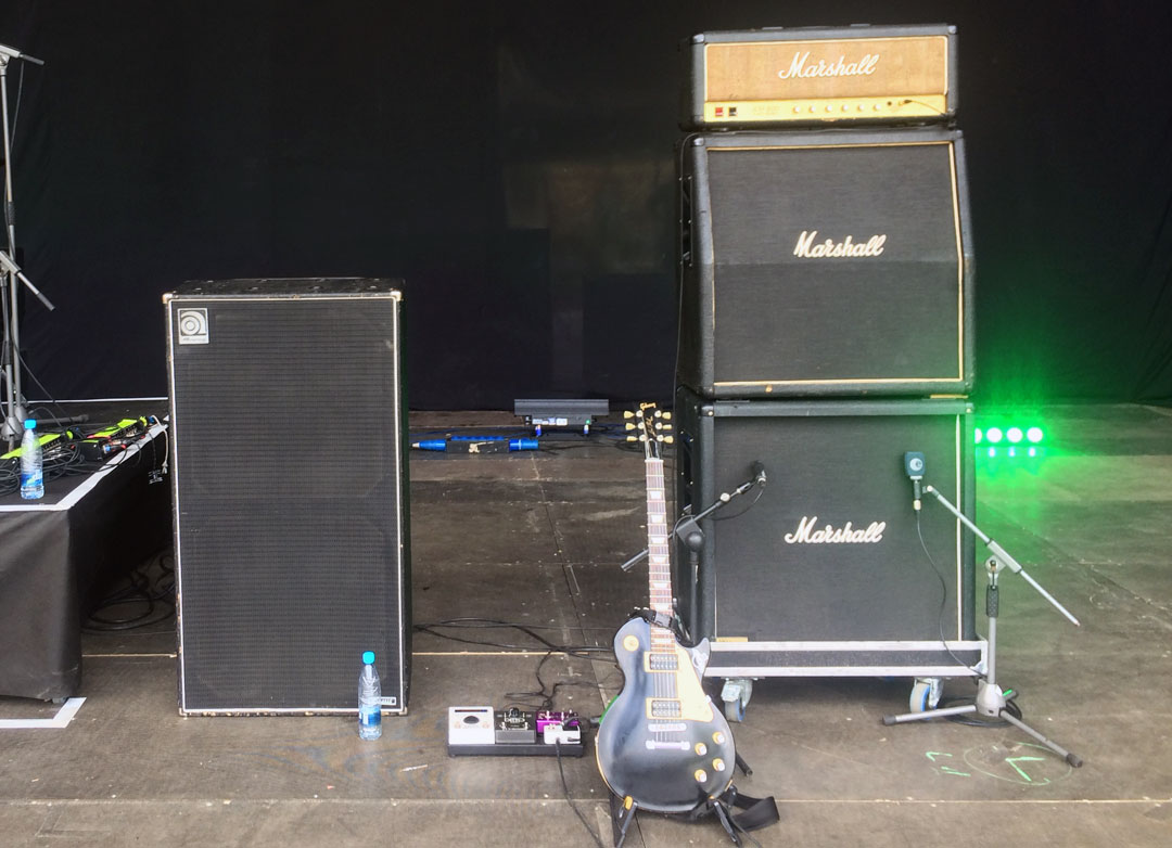 El lunes por la mañana amanecimos, me hice unos mates, repasamos un par de arreglos con el bajista y nos fuimos a probar sonido. La prueba de sonido estuvo súper bien, nos trataron de 10, los equipos estaban impecables y el escenario… EL ESCENARIO era gi gan te. De repente 6 metros de cable era muy muy poco :p